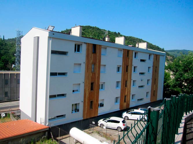 Galerie Réhabilitation des façades et ITE locatifs social Saint Pons de Thomières (34) Bailleur Hérault Habitat.